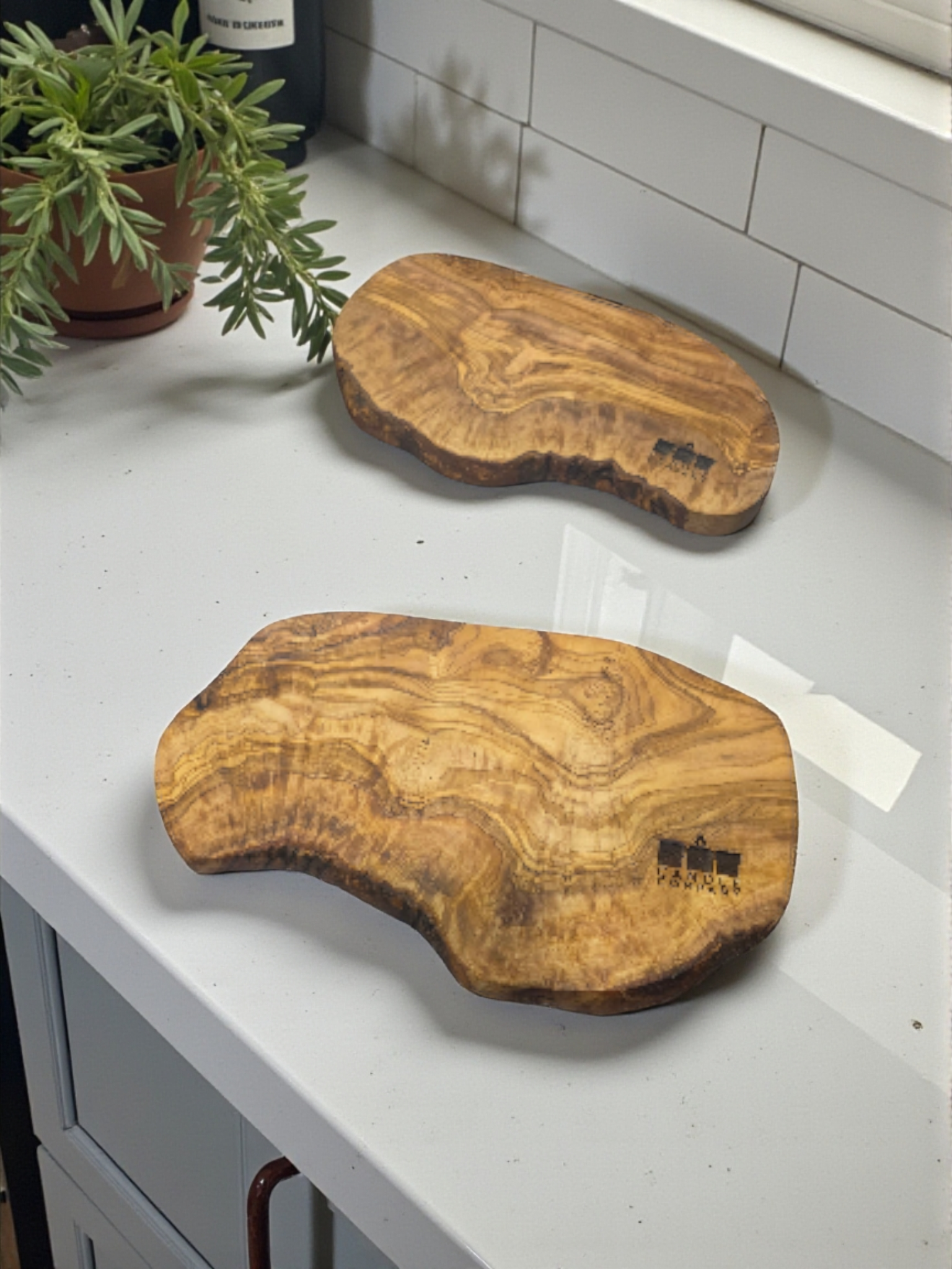 Each board is handcrafted from genuine olive wood, meaning no two are ever the same. The natural grain and rich tones give every piece its own character and durability.